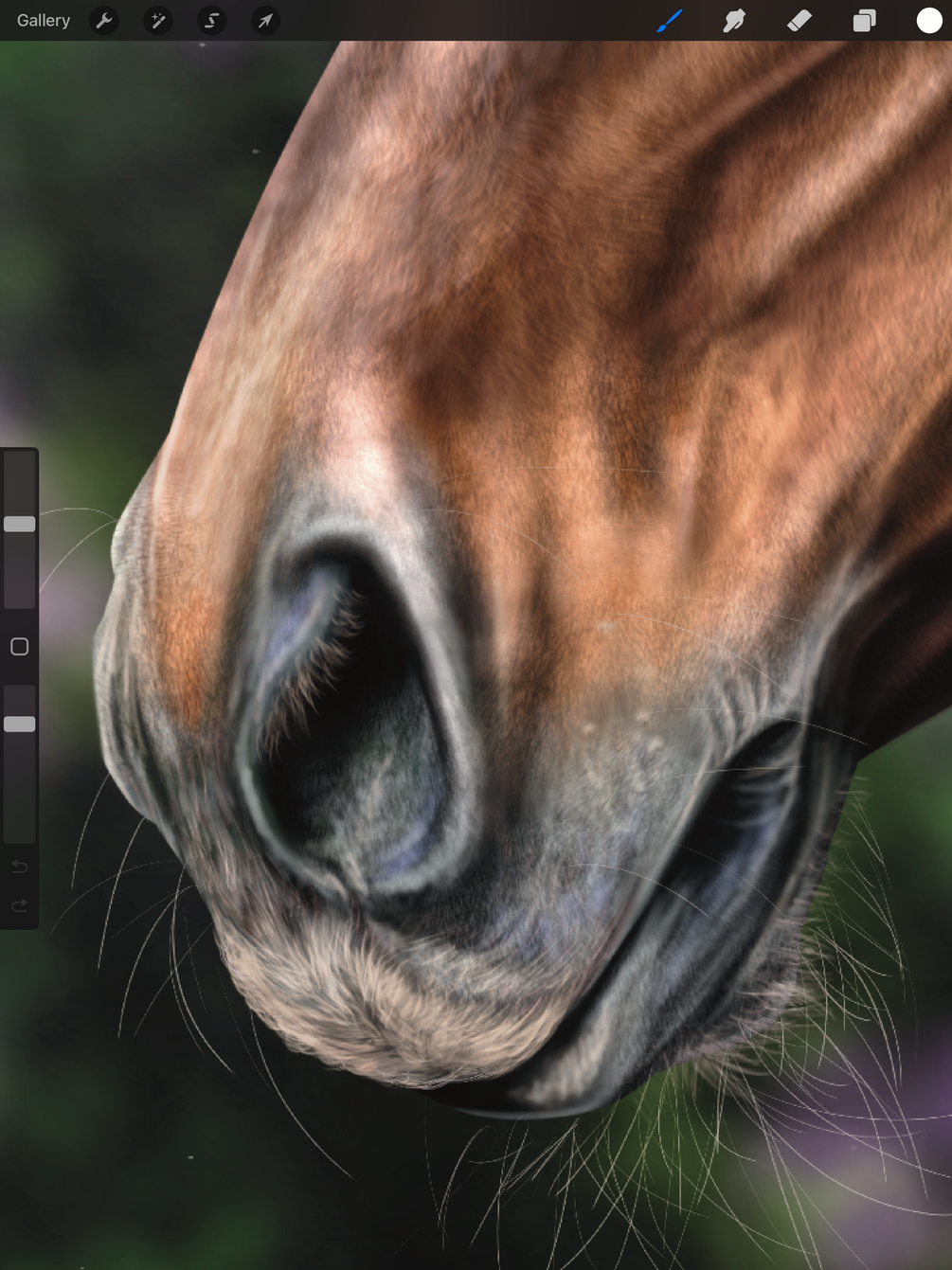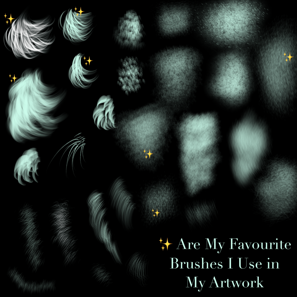These user friendly brushes were designed from studies of real equine coats and facial features for maximum realism texture effect and are sure to make your painting fun, therapeutic, and give it a jaw dropping finished look! Each brush moves in the direction of your pen and canvases angle; rotate your pen/finger/or even screen to achieve the hair direction you desire. Some brushes are best used by tapping lightly to not over power your details to form shape underneath and finishes it off with a chefs kiss amount of hair texture!